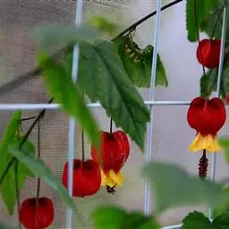 倒挂金钟(拉丁学名:Fuchsia hybrida hort. ex Sieb. et Voss ),别名:灯笼花、吊钟海棠。多年生半灌木,茎直立。高50-200厘米,粗6-20毫米,多分枝,被短柔毛与腺毛,老时渐变无毛,幼枝带红色。叶对生,卵形或狭卵形,长3-9厘米,宽2.5-5厘米。喜凉爽湿润环境,怕高温和强光,以肥沃、疏松的微酸性壤土为宜,冬季温度不低于5℃。