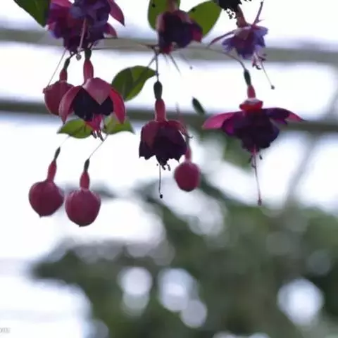 倒挂金钟花形奇特,极为雅致。盆栽用于装饰阳台、窗台、书房等,也可吊挂于防盗网、廊架等处观赏。
