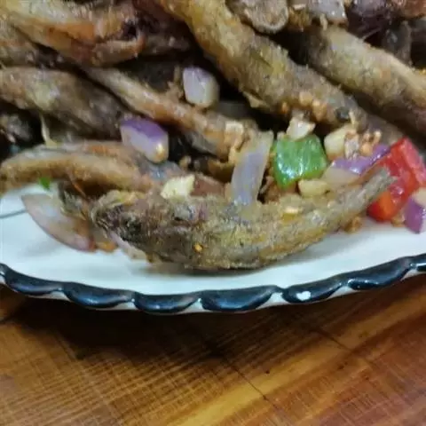 制作:咸鱼切成0.3厘米见方的粒,同腊八豆用色拉油炒至酥香,加辣酱等调味品用小火炒约5分钟至炒匀即成。