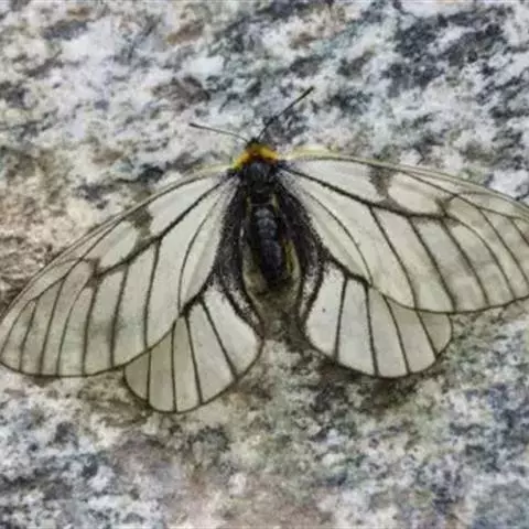 冰清绢蝶:是绢蝶科、绢蝶属的一种蝴蝶。翅展60-70毫米。翅白色,翅脉灰黑褐色。…