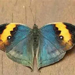 枯叶蛱蝶,又名木叶蝶、树叶蝶等,属于蛱蝶科。翅正面黑褐色,具深蓝色光泽,前翅顶角尖出,…