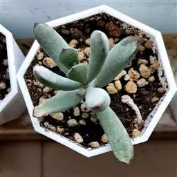 福娘为景天科银波锦属的肉质草本植物。对生的叶片呈短棒状,叶色灰绿,表覆白粉,叶缘外围镶着紫红色,…