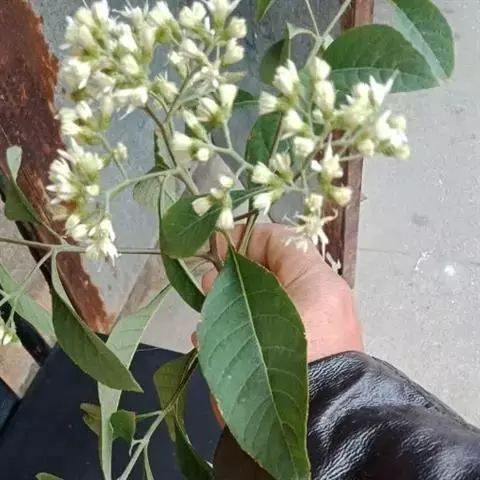 扁桃斑鸠菊(学名:Vernonia amygdalina Delile)是菊科、斑鸠菊属旱生型灌木或小乔木,高可达6米。叶互生,叶片长卵形,先端尖,叶面亮灰绿色,背面灰白色,有特殊气味和辣味。叶不下延,羽状脉,头状花序顶生或腋生,总苞片数层,花两性,花冠管状,乳白色至粉红色。总苞向外渐短,常具腺;花托平,檐部上端具裂片;花药顶端尖,基部箭形或钝,具小耳;花柱分枝细,钻形,顶端稍尖,被微毛;瘦果顶端截形,基部常具胼胝质,被常具腺;冠毛内层细长,糙毛状,外层极短。
