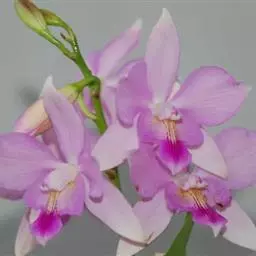 紫根兰鳞茎肥大,近球形,直径5—7cm,外皮淡绿色或黄褐色、紫色。叶片两侧对生,带状,先端渐尖,6—8枚,有的叶片于花后生出。总花梗中空,被有白粉,顶端着花2—4朵,花喇叭形,多为红色。 花期由冬至春,甚至更晚。