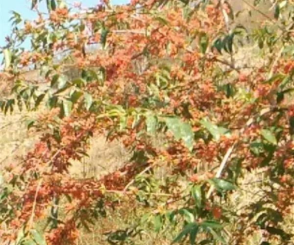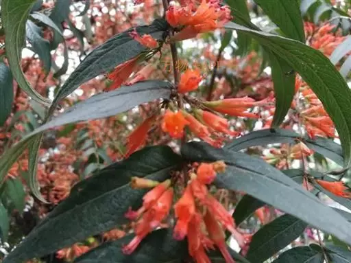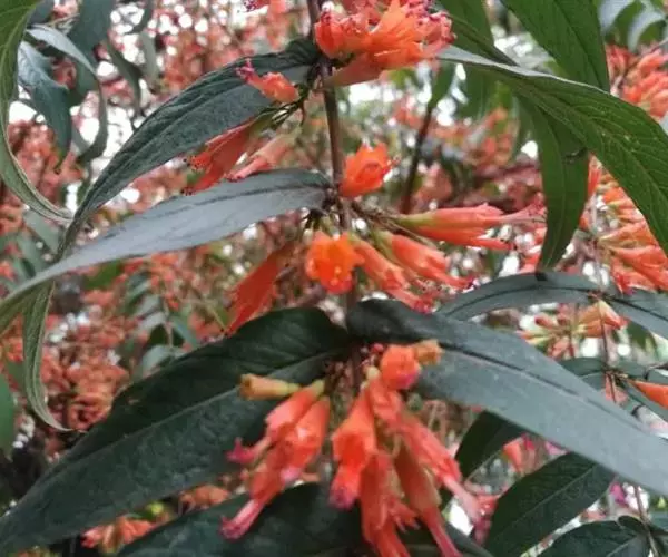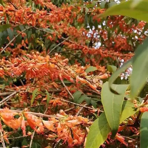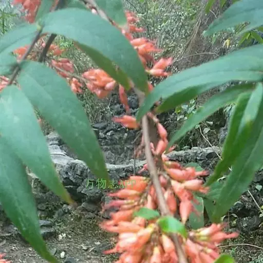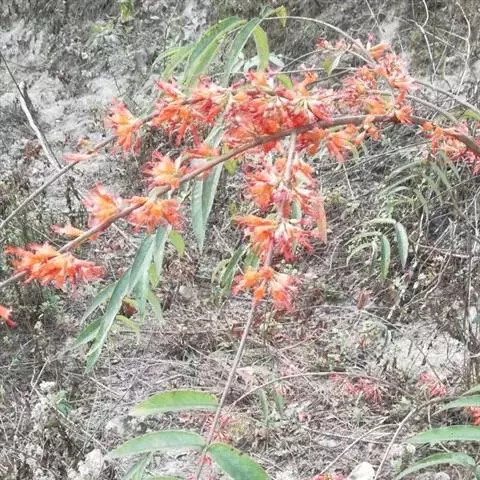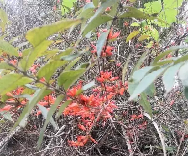 虾子花(学名:Woodfordia fruticosa (L.) Kurz.)是千屈菜科,虾子花属灌木。高3-5m,有长而披散的分枝;幼枝有短柔毛;叶对生,近革质,披针形或卵状披针形,顶端渐尖;短聚伞状圆锥花序,被短柔毛,花瓣小而薄,淡黄色;蒴果膜质,线状长椭圆形;种子小,卵状或圆锥形,红棕色。花期春季。