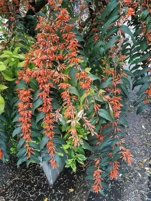 虾子花枝叶茂密,盛花时满枝红艳状如落锅的红虾,成串悬挂,形态奇特,观赏价值高,适宜种植于庭园、公园、花坛、水滨等处。