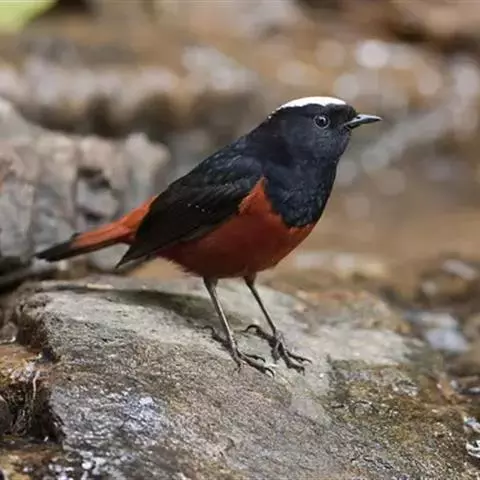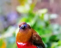 橙胸咬鹃:全长约28厘米。雄鸟头、颈橄榄绿色,上体及中央尾羽栗色;中央尾羽具黑色端,…