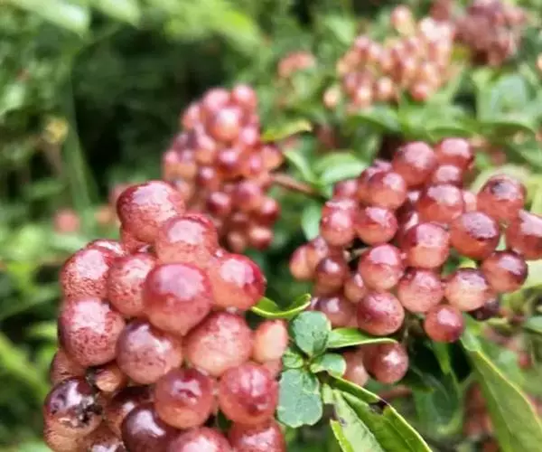 干燥果实卵状椭圆形,压扁,长约7mm,红褐色,具纵棱槽,内有种子1粒,长椭圆形,压扁,背部具2纵槽,腹部具3纵槽,种皮常粘附果肉。气微,味酸,甘。以子粒饱满,色红,味甘者为佳。