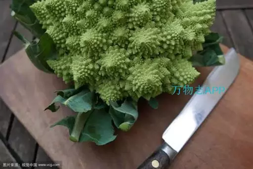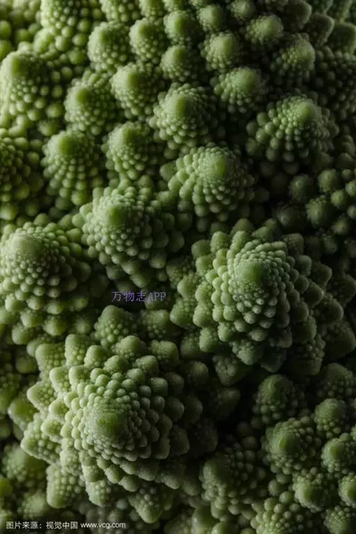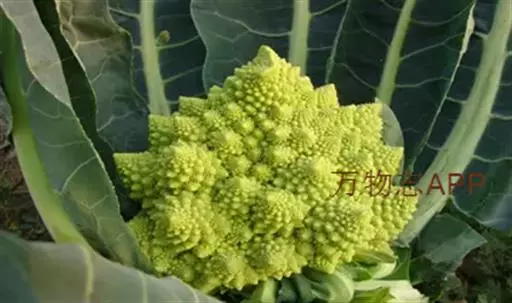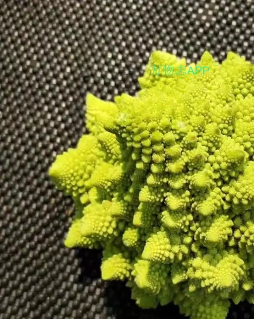 罗马花椰菜,俗称青宝塔,是一种十字花科芸薹属甘蓝种一二年生草本植物,可食用,16世纪发现于意大利。罗马花椰菜花球表面由许多螺旋形的小花所组成,小花以花球中心为对称轴成对排列。它的神奇在于其规则和独特的外形,已经成为著名的分形几何模型。它以一种特定的指数式螺旋结构生长,而且所有部位都是相似体,这与分形几何中不规则碎片形所包含的简单数学原理相似。因此吸引了无数的数学家和物理学家加以研究