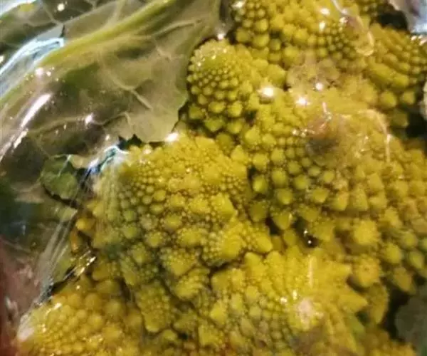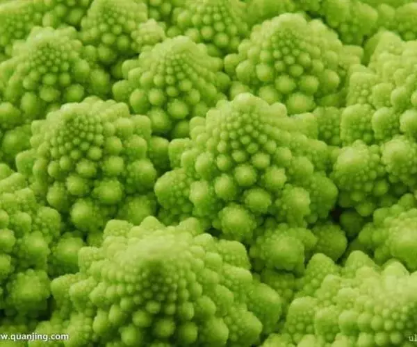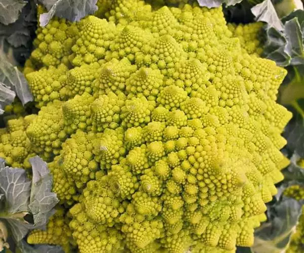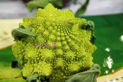 这种花椰菜的变种是最重要的不规则碎片形蔬菜。它的图案是斐波纳契数列,或称黄金螺旋型(一种对数螺旋,小花以花球中心为对称轴,螺旋排列)的天然代表。