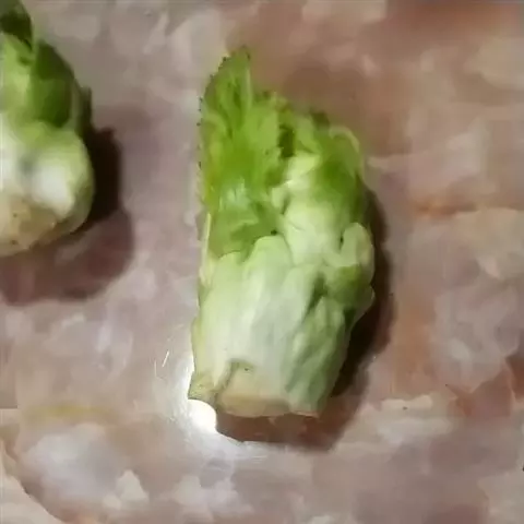 劣质罗马花椰菜——花球松散,花梗伸长有散花,花球失水萎蔫,外包叶变黄,花球上霉斑较多,占花球的十分之三至十分之七。