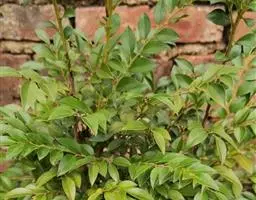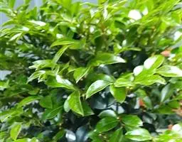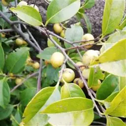 半常绿或落叶乔木,高达5-13米,直径约15-50厘米;树冠近球形,枝多而开展,嫩枝有绒毛,枝端有时成棘刺;冬芽很小,先端钝,有毛。叶薄革质或革质,椭圆形或倒卵形至长圆形,长1.5-6厘米,宽1.5-3厘米,先端钝或圆,基部楔形,叶片有微小的透明斑点,上面黑绿色,有光泽,下面有微小柔毛;叶柄长约3毫米。雄花集成小伞房花序;花乳白色,花冠甕形,芳香,长4-5毫米,有绒毛。