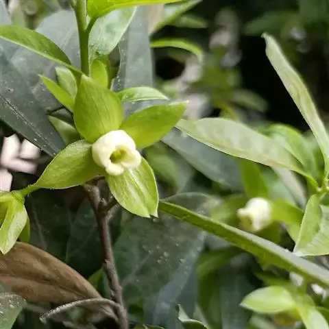 瓶兰花的花形似瓶,香味如兰,所以被称作“瓶兰花”。瓶兰花的叶呈椭圆形或倒卵形,色绿浓郁,表面有光泽,果实呈卵形,成熟后为橙红色,加上长长的果柄,如同金丸悬挂,且经久不脱落,十分诱人,是一种高档的观果树种。