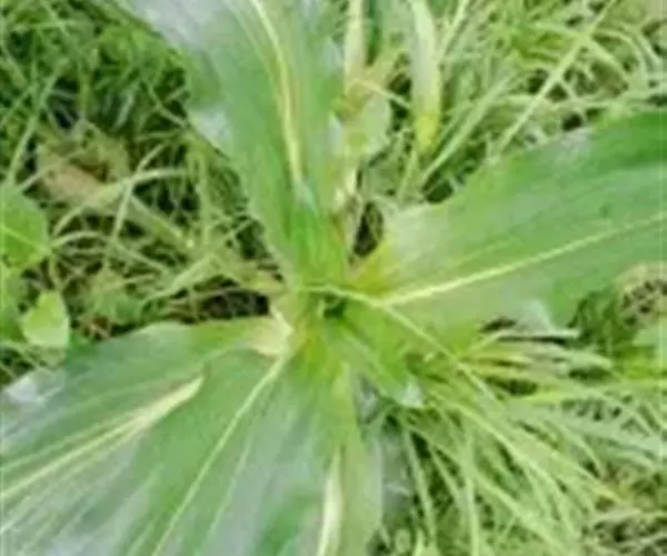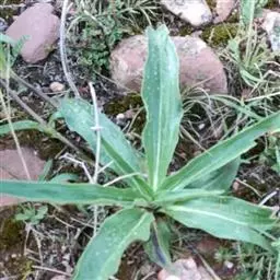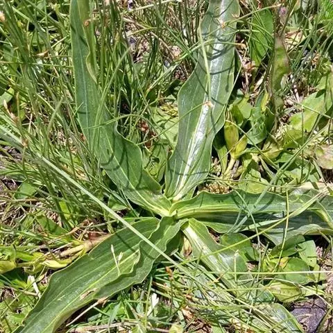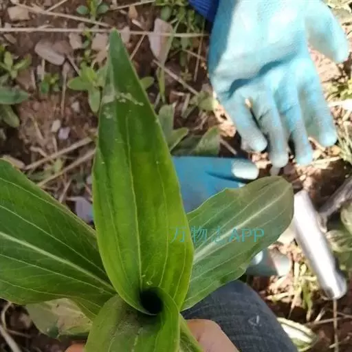 枝少数丛生,直立或斜升,黄绿色或有时上部带紫红色,近圆形。莲座丛叶卵状椭圆形或狭椭圆形,长6-28厘米,宽2.5-6厘米,先端钝或急尖,基部渐狭,边缘平滑,叶脉5-7条,在两面均明显,并在下面突起,叶柄宽,长3-5厘米,包被于枯存的纤维状叶鞘中;茎生叶椭圆状披针形或狭椭圆形,长4.5-15厘米,宽1.2-3.5厘米,先端钝或急尖,基部钝,边缘平滑,叶脉3-5条,在两面均明显,并在下面突起,无叶柄至叶柄长达4厘米。