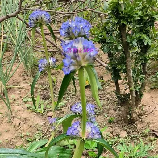 花多数,无花梗,簇生枝顶呈头状或腋生作轮状;花萼筒膜质,黄绿色或有时带紫色,长(3)7-9毫米,一侧开裂呈佛焰苞状,先端截形或圆形,萼齿4-5个,稀1-3个,甚小,锥形,长0.5-1毫米;花冠筒部黄绿色,冠澹蓝色或蓝紫色,壶形,长1.8-2厘米,裂片卵形或卵圆形,长3-4毫米,先端钝或钝圆,全缘,褶整齐,三角形,长1-1.5毫米或截形,全缘;雄蕊着生于冠筒中下部,整齐,花丝线状钻形,长5-6,长2-2.5毫米;子房无柄,椭圆状披针形或狭椭圆形,长9-11毫米,先端渐狭,花柱线形,连柱头长1.5-2毫米,柱头2裂,裂片矩圆形。