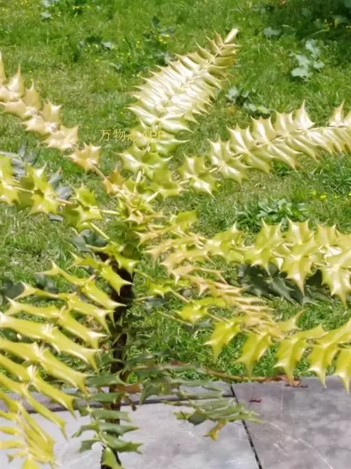 猫儿刺冬青科冬青属。株高可达2米。基部常有主杆,多分枝,皮灰褐色,有光泽,小枝细长有条棱,托叶和叶柄在长枝上硬化成刺,短枝上的脱落。偶数假掌状复叶,小叶4,倒卵状披针形,顶有针尖。花梗单生,中部以上有关节,花蝶形,黄色,萼筒状钟形,基部有囊状突起,雄蕊10个,2体(9+1)。荚果圆筒形,无毛。