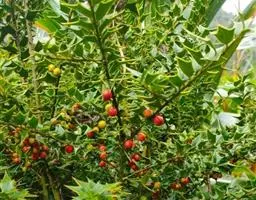枸骨又名猫儿刺、老虎刺等,为常绿灌木或小乔木,叶形奇特,碧绿光亮,四季常青,入秋后红果满枝,经冬不…