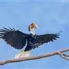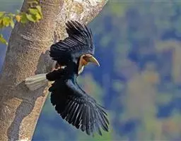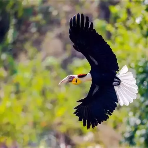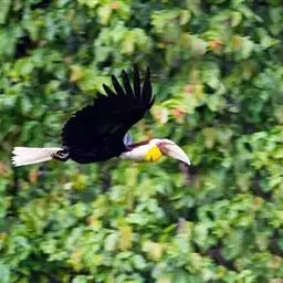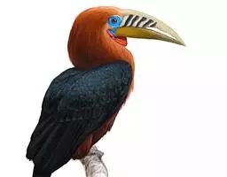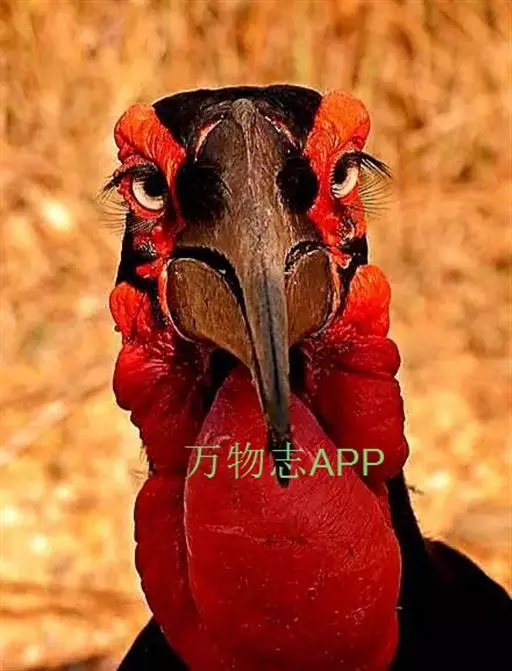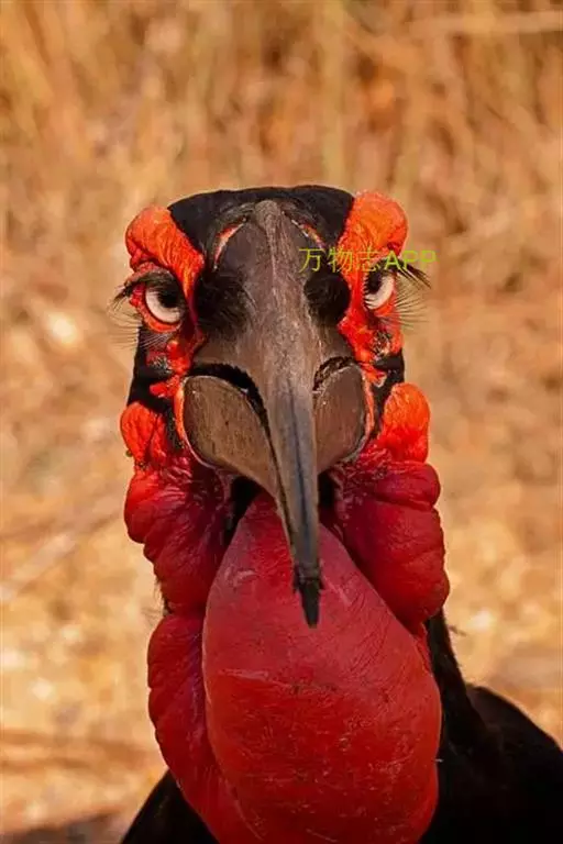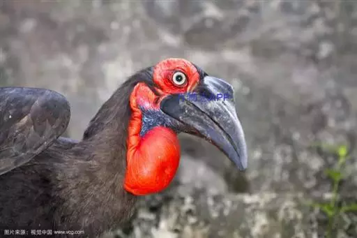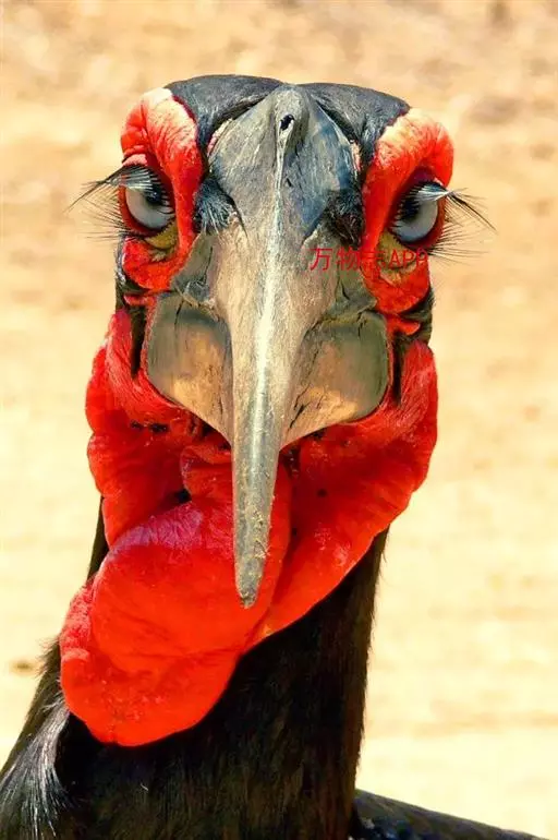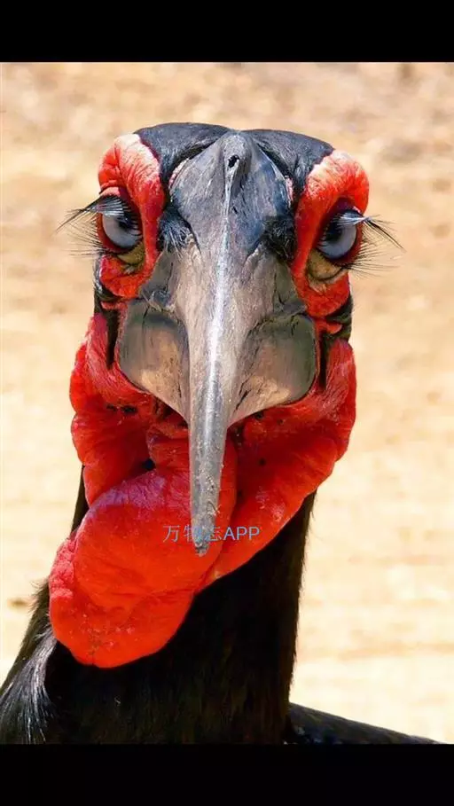 红脸地犀鸟全长约127cm,是犀鸟科中体型最大的鸟。全身体羽为黑色,嘴和脚也为黑色。脸部、喉部及喉囊,裸露的皮肤为朱红色。