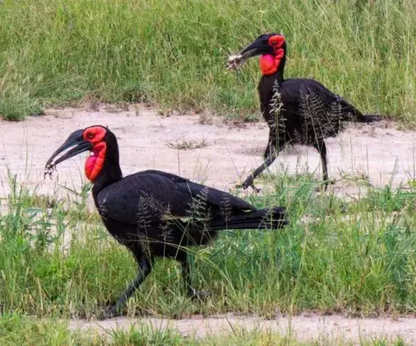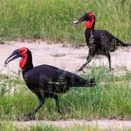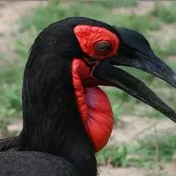 红脸地犀鸟是地栖犀鸟的一种,是非洲常见的地犀鸟。由于外形奇特,是著名的珍惜玩赏鸟,全国部分动物园和鸟园有饲养展出。它们生活在非洲南部,大部分时间在地面上活动。雄性地犀鸟体长可达129厘米,重达6.2公斤,雌性体型稍小。