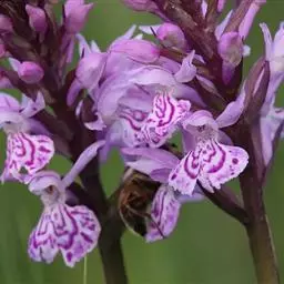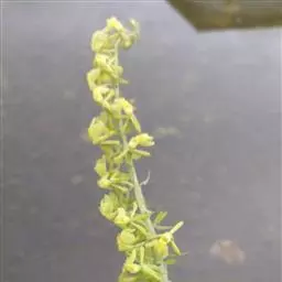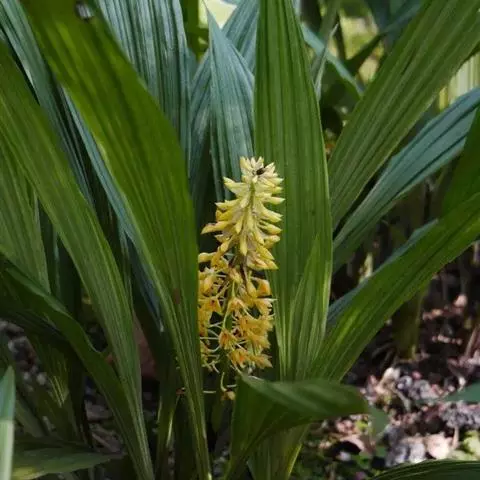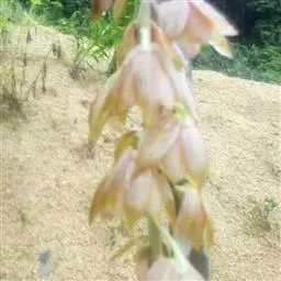 花葶从叶丛中抽出,直立,长达70余厘米;花序柄被2-3枚筒状鞘和数枚苞片状叶,密被短毛;总状花序长5-10厘米,密生许多花;花苞片宿存,草质,向外伸展,卵状披针形,长1-2厘米,基部上方宽5-10毫米,先端急尖,边缘多少波状,被毛或有时近无毛;花梗和子房白色,纤细,斜立,长达4厘米,被短毛;花白色或偶见淡紫红色,后来转为桔黄色;萼片和花瓣常反折,质地较厚,干后变黑色;中萼片近椭圆形,长9-12毫米,中部宽4.5-5.5毫米,先端锐尖或具细尖头,具5条脉,其中中间3条较明显,背面被短毛;侧萼片稍斜的倒卵状披针形,比中萼片稍大,具5条脉,背面被短毛。