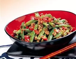 干煸四季豆是一道特色传统菜肴,属于川菜菜系,主要制作材料有四季豆、猪肉、红干辣椒等。干煸四季豆口味…