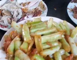 苦瓜炒蛋是一道很普通的家常菜,用苦瓜和鸡蛋一起煎炒而成。