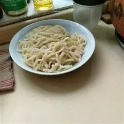D、先往烧开的水里煮点蔬菜(冬天可用莴笋),等2分钟把面放下去,搅拌一下,煮到断生(用手掐开一截面,没有白点即可)就可以装碗了。