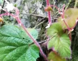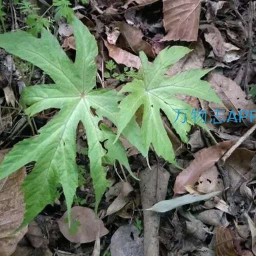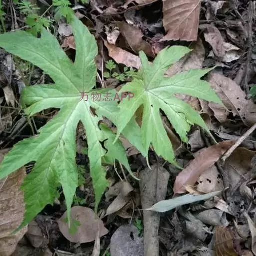 叶均基生,具长柄;叶片轮廓宽卵形至扁圆形,长10-17厘米,基部近截形或微心形,5-6深裂,裂片长圆形至椭圆形,长5-13厘米,先端渐尖,基部楔形,通常不再分裂,两侧裂片较小,边缘常浅裂,裂片三角形,全边具粗而浅不等大之齿,齿尖常带短芒,干时上面褐绿色,散生短硬毛,下面色淡,沿脉散生糙伏毛,毛略不等长,掌状5-6条脉,至分裂处呈羽状脉;叶柄细弱,长8-28厘米,被褐色卷曲长毛,在上部密,以后逐渐减少;托叶卵形,长5-8毫米,宽3-5.5毫米,先端渐尖,顶端带刺毛,全缘,无毛。