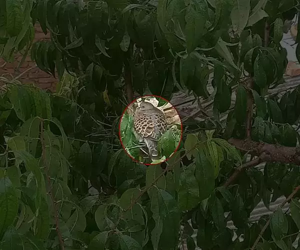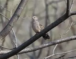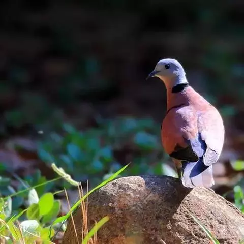 山斑鸠,是鸽形目鸽鸠科斑鸠属鸟类,又名金背斑鸠、棕背斑鸠、山鸠、金背鸠、麒麟斑、麒麟鸠、东方斑鸠、绿斑鸠、山鸽子。山斑鸠颈侧具明显黑白色条纹的块状斑,上体深褐色、具扇贝状斑纹,羽缘棕色,尾羽近黑色,下体多偏粉色。虹膜黄色,喙灰色,脚粉色。山斑鸠是留鸟,在中国常见且分布广泛。此外,还分布于不丹、尼泊尔、巴基斯坦、印度、日本等国。栖息于针阔混交林、季风常绿阔叶林、果园及农耕区,多成对活动于开阔农耕区、村舍、寺院周围及防火林带。取食于地面,主要觅食植物种子、果实、嫩芽等,也吃昆虫。山斑鸠飞翔时鼓翼快速,叫声为反复而低沉的“咕咕咕”声。繁殖期在4-7月,营巢于林中树上,通常一年繁殖2窝,窝卵数2枚,由雌雄亲鸟轮流孵卵,孵化期18~19天。山斑鸠的肉、卵可食,肉入药可益气明目、强筋壮骨,治久病气虚、衰弱无力、两目昏暗等病症。山斑鸠啄食杂草种子,对农田清除杂草有益;但有时也刨食农作物及树的种子。山斑鸠