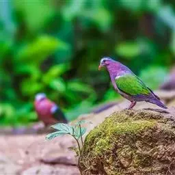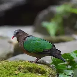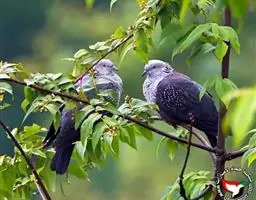 习性:常成对或成小群活动,有时成对栖息于树上,或成对一起飞行和觅食。如伤其雌鸟,雄鸟惊飞后数度飞回 山斑鸠 原处上空盘旋鸣叫。在地面活动时十分活跃,常小步迅速前进,边走边觅食,头前后摆动。飞翔时两翅鼓动频繁,直而迅速。有时亦滑翔,特别是从树上往地面飞行时。鸣声低沉,其声似‘ku-ku-ku’反复重复多次。