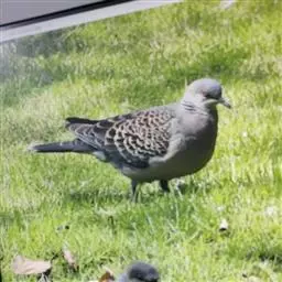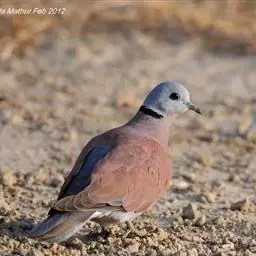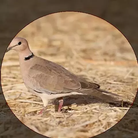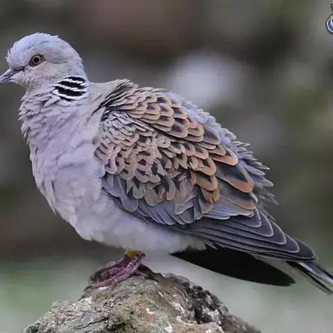欧斑鸠体长27厘米,是一种体型略小的粉褐色斑鸠。颈侧具多黑白色细纹的斑块,翼覆羽深褐,…