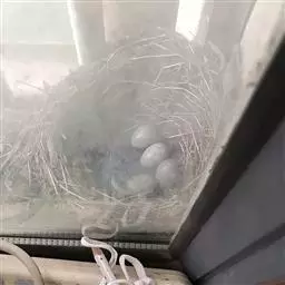 栖息中的山斑鸠 繁殖时间在4-7月。一般年产2窝,通常在迁来时多已成对。营巢于森林中树上,也在宅旁竹林、孤树或灌木丛中营巢。通常置巢于靠主干的枝桠上,距地高多在1.5-8米。巢甚简陋,主要由枯的细树枝交错堆集而成,呈盘状,结构甚为松散,从下面可看到巢中的卵或雏鸟。巢的大小为外径14-18厘米×16-20厘米,内径8-10厘米×8-11厘米,高4-8厘米,深3-5厘米。巢内无内垫,或仅垫有少许树叶、苔藓和羽毛。每窝产卵2枚,卵白色,椭圆形,光滑无斑,大小为28-37毫米×21-27毫米,重7-12克。雌雄亲鸟轮流孵卵,孵卵期间甚为恋巢,有时人在巢下走动或停留亦不离巢飞走,孵卵期18-19天。雏鸟晚成性,刚出壳时雏鸟裸露无羽,身上仅有稀疏几根黄色毛状绒羽。由雌雄亲鸟共同抚育,雏鸟将嘴伸入亲鸟口中取食亲鸟从嗦囊中吐出的半消化乳状食物‘鸽乳’。经过18-20天的喂养,幼鸟即可离巢飞翔。