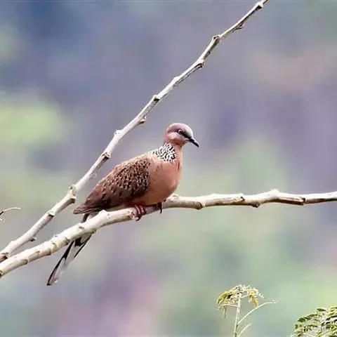 棕斑鸠,是鸽形目鸠鸽科斑鸠属鸟类。整个头和颈淡粉红色,头顶和前额较暗,颊、喉较淡,…