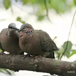 珠颈斑鸠,别名花斑鸠、珍珠鸠、花脖斑鸠、鸪鹪,是鸠鸽科副斑鸠属鸟类。体型中等,体长27~34cm,…