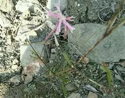金铁锁(学名:Psammosilene tunicoides W.C.Wu & C.Y.Wu)是石竹科,金铁锁属多年生草本植物。根肉质,长倒圆锥形,棕黄色,茎平卧铺散,叶片卵形,上面被疏柔毛,下面沿中脉被柔毛。三歧聚伞花序密被腺毛;花梗短或近无;花萼筒状钟形,密被腺毛,绿色,萼齿三角状卵形,边缘膜质;花瓣紫红色,狭匙形,花丝无毛,花药黄色;子房狭倒卵形,蒴果棒状,种子狭倒卵形,6-9月开花,7-10月结果。