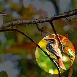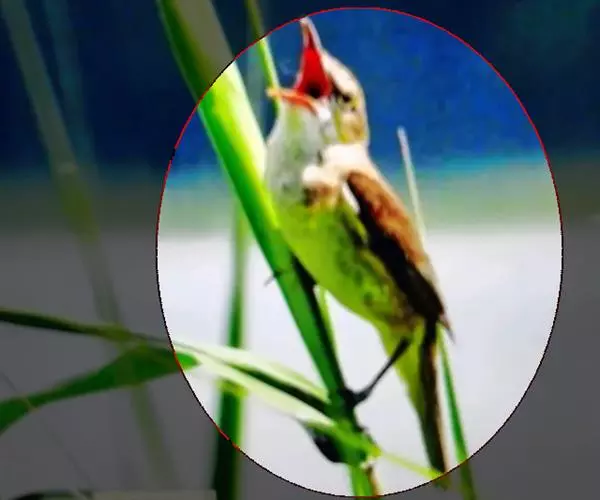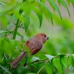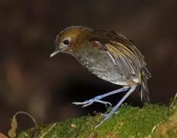 雌鸟头部为灰蓝色,翅膀外侧的红棕色羽毛区域比较小,上喙浅黄色,下喙灰白色。