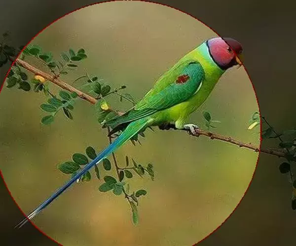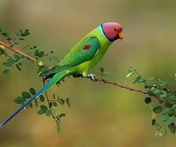 花头鹦鹉体长约30厘米。这种鹦鹉鸟体为绿色,头部粉红色,到了头部后方、颈部均变为蓝紫色;下巴下方延伸到脸颊下方,环绕整个颈部有著一条黑色的环状羽毛,并连接一条蓝绿色的条状羽毛;背部下方和翅膀内侧覆羽与为绿色,翅膀外侧的覆羽上有一块红棕色的羽毛;中间尾羽为蓝色,尖端浅黄,外侧覆羽黄绿色,尖端浅\黄色;上鸟喙橙黄色,下鸟喙棕黑色,虹膜黄白色。 [1-2]