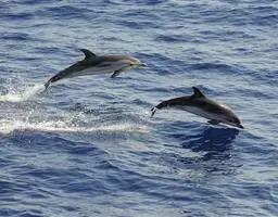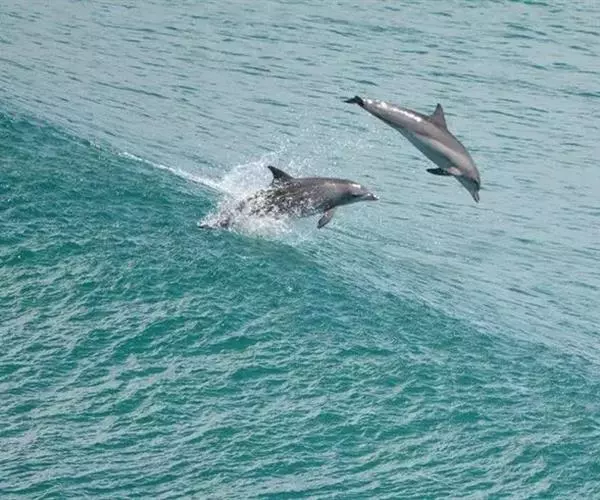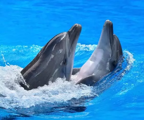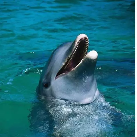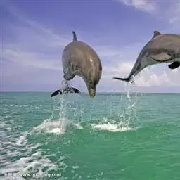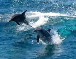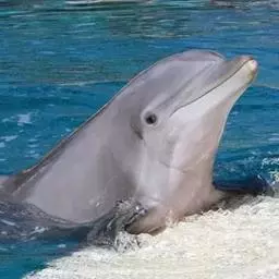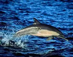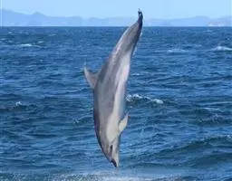 宽吻海豚,Tursiops truncatus (Montagu, 1821),海豚科宽吻海豚属的一种动物。又叫尖嘴海豚,胆鼻海豚。主要分布在温带和热带的各大海洋中,包括中国的黄海、渤海等海域。宽吻海豚常在靠近陆地的浅海地带活动,较少游向深海,和所有海豚一样,宽吻海豚长着和鱼一样的流线型身体。皮肤光滑无毛,体背面是发蓝的钢铁色和瓦灰色,腹部有很明显的凸起。吻较长,嘴短小,嘴裂外形似乎总是在微笑,为中国二级保护动物。雌性宽吻海豚的寿命在80年左右,而雄性宽吻海豚由于生活压力更大,不容易过50年。