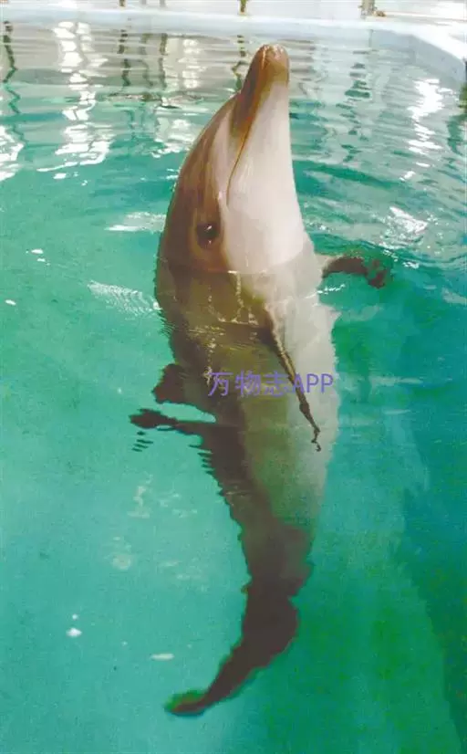 东方宽吻海豚 Tursiops. aduncus,主要分布于印度、澳大利亚、南中国海周边的海域,背部为深灰色,腹部为白色并有灰色斑点。 宽吻海豚