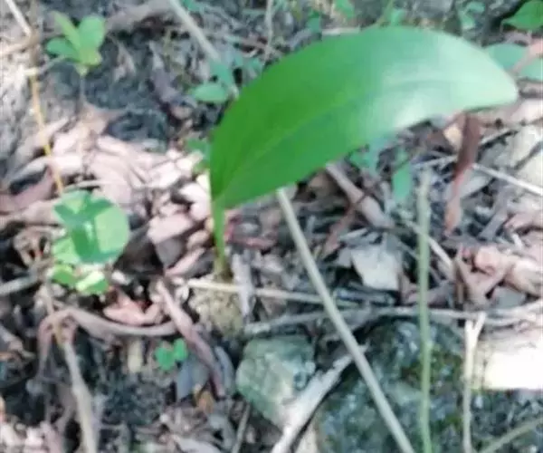 鳞茎单生或2-3枚聚生,近圆柱状;鳞茎外皮灰褐色至黑褐色,破裂成纤维状,呈明显的网状。叶2-3枚,倒披针状椭圆形至椭圆形,长8-20厘米,宽3-9.5厘米,基部楔形,沿叶柄稍下延,先端渐尖或短尖,叶柄长为叶片的1/5-1/2。