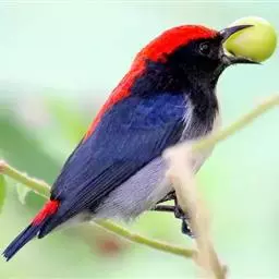 主要以昆虫和植物果实为食,特别是寄生植物的果实。也吃花、花粉、花蜜和少量昆虫、蜘蛛等动物性食物。