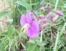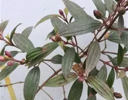 柏拉木,别名:黄金梢、山甜娘、崩疮药,拉丁文名:Blastus cochinchinensis Lour. ,为野牡丹科、柏拉木属灌木,高0.6-3米;茎圆柱形,分枝多,幼时密被黄褐色小腺点,以后脱落。叶片纸质或近坚纸质,披针形、狭椭圆形至椭圆状披针形,顶端渐尖,基部楔形,全缘或具极不明显的小浅波状齿,白色至粉红色,卵形,顶端渐尖或近急尖,为宿存萼所包;宿存萼与果等长,檐部平截,被示腺点。花期6-8月,果期10-12月,有时茎上部开花,下部果熟。