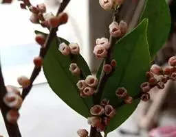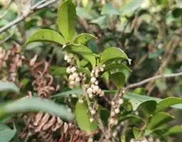 (原变种)灌木或小乔木,高2-10米,胸径约20厘米,全株无毛;树皮灰褐色或灰白色;顶芽大,长锥形,长1-1.5厘米,无毛;嫩枝褐色,略具二棱,小枝灰褐色,圆柱形。叶革质,长圆形或长圆状椭圆形至椭圆形,长6-9厘米,宽2.5-3. 5厘米,顶端渐尖或短渐尖,稀可近于钝形,基部楔形或阔楔形,全缘,上面深绿色,有光泽,下面淡绿色;中脉在上面平贴或少有略下凹,下面隆起;侧脉6-8对,稀可达10对,两面稍明显,有时且隆起,或在下面不明显;叶柄长7-10毫米。花常2-4朵腋生,花梗长1-2厘米;苞片2,早落;萼片5,卵圆形或圆形,长宽各约2.5毫米,顶端圆,边缘有纤毛;花瓣5,白色,倒卵状长圆形,长约8毫米;雄蕊25-30枚,长4-6毫米,花药卵形或长卵形,长约1.5毫米,有丝毛,花丝无毛,药隔顶端有小尖头;子房圆球形,无毛,2室,胚珠每室10多个,花柱长约6毫米,顶端2浅裂。果实圆球形,成熟时紫黑色,直径8-10毫米,果梗长1.5-2厘米;种子每室数个至10多个,扁圆形,深褐色,有光泽,直径约2毫米。花期5-6月,果期10-11月。