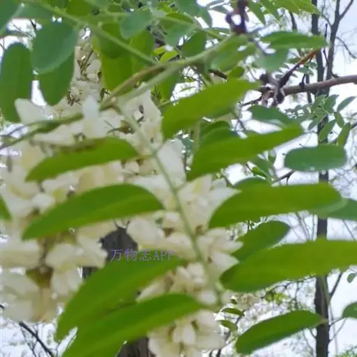 总状花序花序腋生,长10~20厘米,下垂,花多数,芳香;苞片早落;花梗 刺槐 长7~8毫米;花萼斜钟状,长7~9毫米,萼齿5,三角形至卵状三角形,密被柔毛;花冠白色,各瓣均具瓣柄,旗瓣近圆形,长16毫米,宽约19毫米,先端凹缺,基部圆,反折,内有黄斑,翼瓣斜倒卵形,与旗瓣几等长,长约16毫米,基部一侧具圆耳,龙骨瓣镰状,三角形,与翼瓣等长或稍短,前缘合生,先端钝尖;雄蕊二体,对旗瓣的1枚分离;子房线形,长约1.2厘米,无毛,柄长2~3毫米,花柱钻形,长约8毫米,上弯,顶端具毛,柱头顶生。