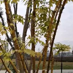 6、龟甲皮刺槐(R. pseudoacacia‘Stricta’)树皮呈龟甲状剥落,黄褐色;