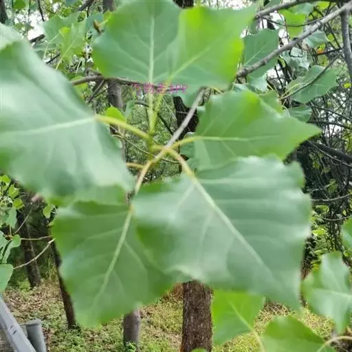 新一代中华红霞杨 大叶杨组,树皮呈片状开裂,粗糙。芽圆锥形,微有粘质,光滑。短枝与长枝叶近圆形,基部心形或深心形;叶柄仅先端微扁。花盘深裂,宿存;雄蕊12-40,花药长椭圆形,具细尖;子房具柔毛,花柱较长,柱头2-3裂。蒴果具毛,2-3(4)瓣裂。