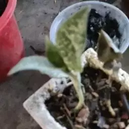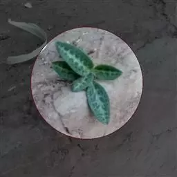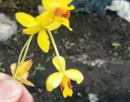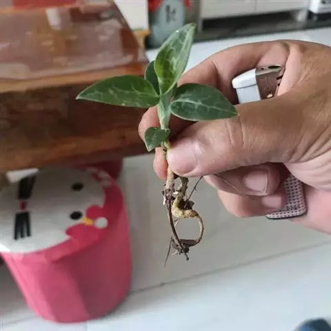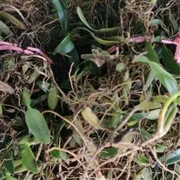 方法一 准备好兰盆及植料后,将兰株倒拿(根在上,叶在下)放于水龙头下以慢水冲洗,但水压切忌过强,以免伤兰根及叶子。用拇指和食指抓住兰头,小指抵住盆缘,用竹筷将根固定,当放入盆内时,尽量不要让根接触到盆壁。将豆粒大的混合石砾倒入盆底至三分之一处。然后倒入中粒植料至五分之四处,填实和尽量不要留下空间。将竹筷拔出,并摇实盆中植料。填实植料后,再用大粒植料埴入至距盆缘1.5厘米处。最后再倒入豆粒大植料,以将假鳞茎全部埋入土中为度,然后充分摇实。用压土工具轻压植料,并将表面弄平。种植完毕后,植料在盆中以中央稍高为好。