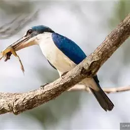 白领翡翠:有50个亚种。体长18厘米,体重35-40克。是一种蓝白色翡翠鸟。…