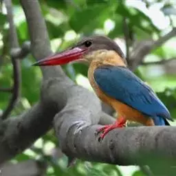 鹳嘴翡翠:体长33-37厘米。体重140-200克。共有13个亚种,体型大,嘴形巨大、侧扁,似鹳嘴…