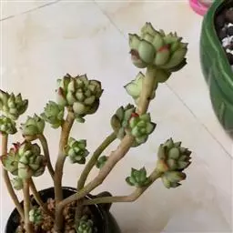 红卷叶 景天科风车草属的多肉植物,株型和石莲花属的极为相似,花瓣披蜡,叶面有白粉。平时为绿色日照充足的时叶色为朱红带褐色,养护得当会开出黄色星状小花。